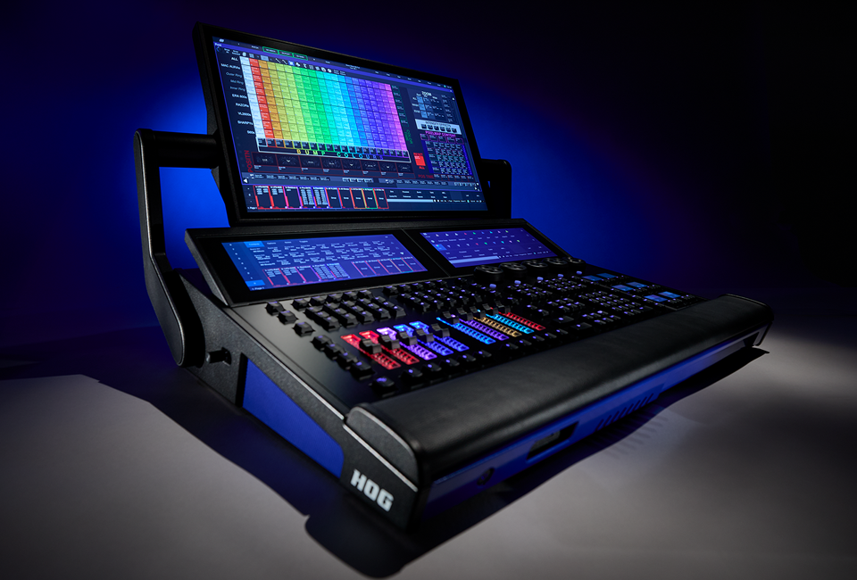 Digital lighting consoles and DMX controllers for precise programming and show control.